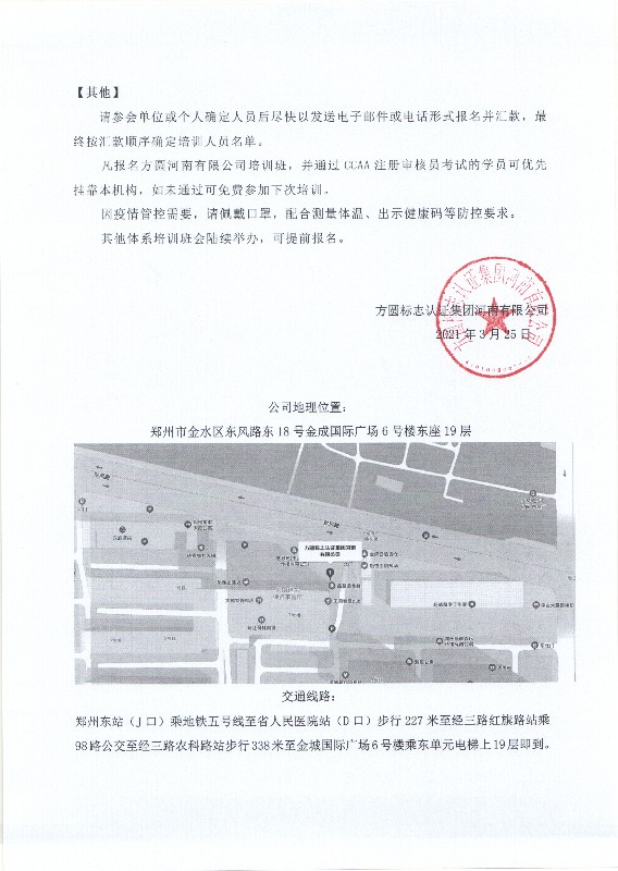 方圓河南公司關(guān)于舉辦國(guó)家注冊(cè)審核員培訓(xùn)班的通知